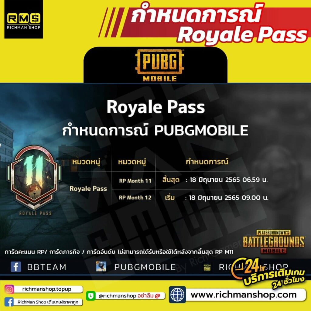 กำหนดการณ์ Royale Pass จะสิ้นสุดเวลา 06.59 น. ในวันที่ 18 มิถุนายนของสัปดาห์หน้า และ ต้อนรับการมาของ Royale Pass M 12 ที่จะตามมาในวันที่ 18 เวลา 09:00น.
