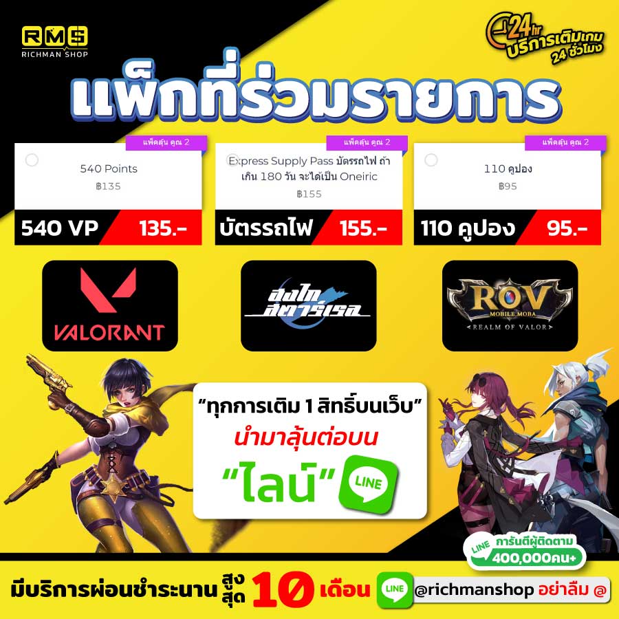 - Valorant แพ็ก 540Vp เติมเสร็จลุ้นต่อ จำนวน 50 รางวัล