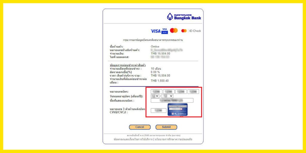 10.เว็บจะพาท่านไปยังหน้ากรอกข้อมูลธนาคารของท่าน ให้ทำการกรอกข้อมูลตามบัตรเครดิตที่ท่านเลือกเอาไว้(ชื่อ-นามสกุลภาษาอังกฤษต้องตรงกับบัตรเครดิตเท่านั้น!)และกดตกลงได้เลย!