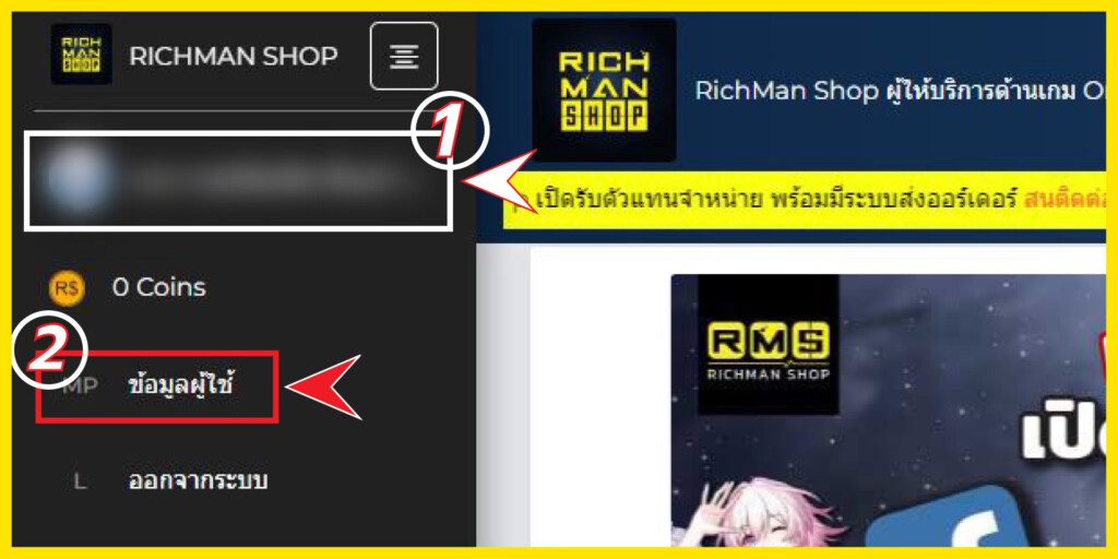 1.เข้าไปที่เว็บไซต์ https://richmanshop.com/home และทำการ Logo in เพื่อเข้าสู่ระบบให้เรียบร้อย