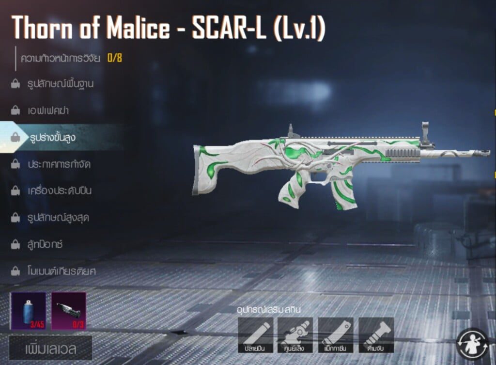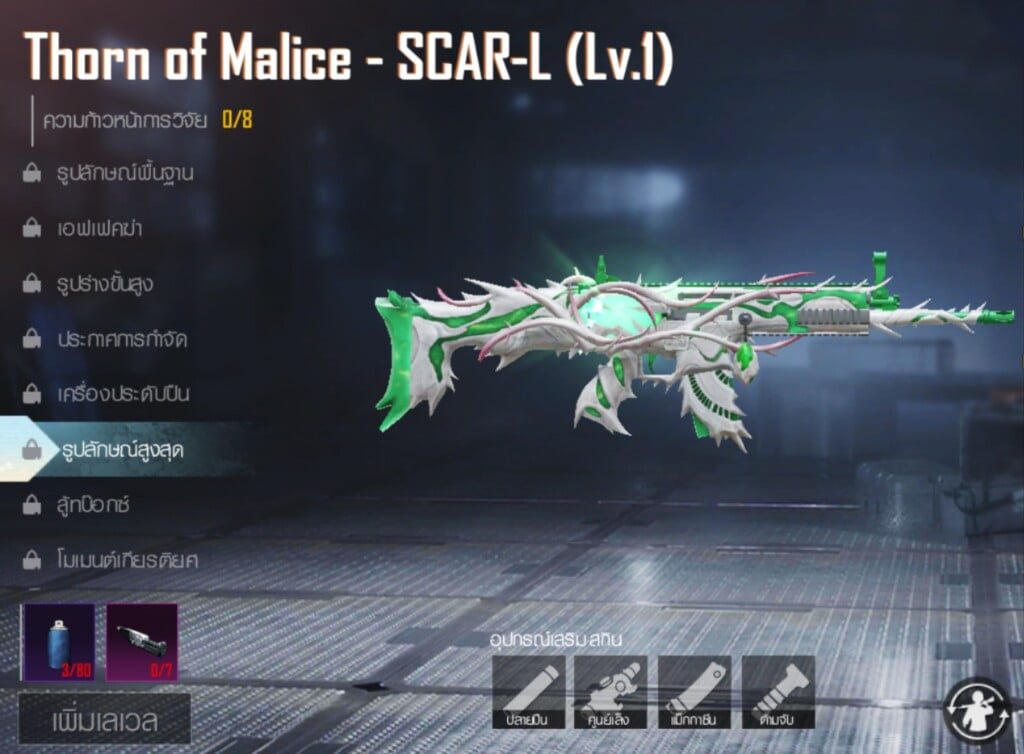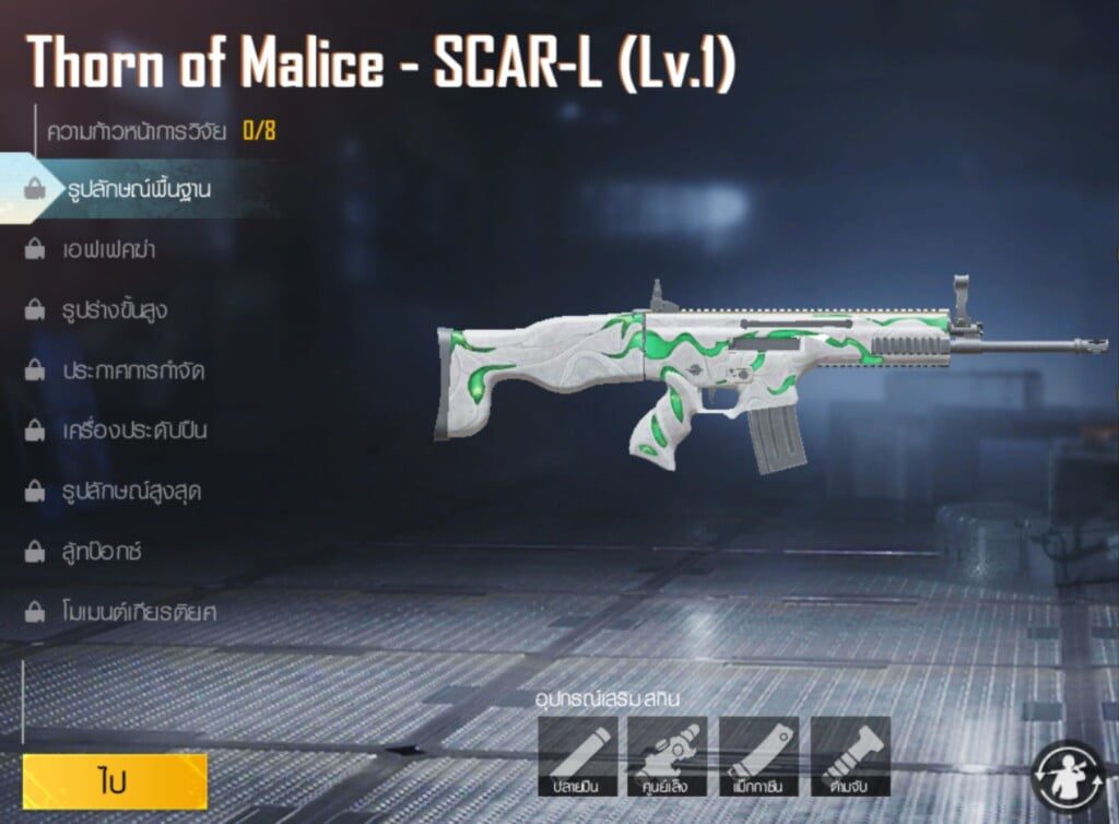 ด้วยความยอดฮิตของตัว SCAR-L ที่เป็นสิ่งที่ผู้เล่นเลือกที่จะหยิบใช้ในเกือบทุกเกม ด้วยความคลาสสิค ความครบเครื่องทั้งพลังทำลายล้าง ความนิ่ง และไม่จำเป็นต้องใช้ทักษะการเล่นมากมาย และถ้าหากใครมีสกิน THORN OF MALICE – SCAR-L บอกเลยว่าโดดเด่นไม่แพ้ใครแน่นอน
