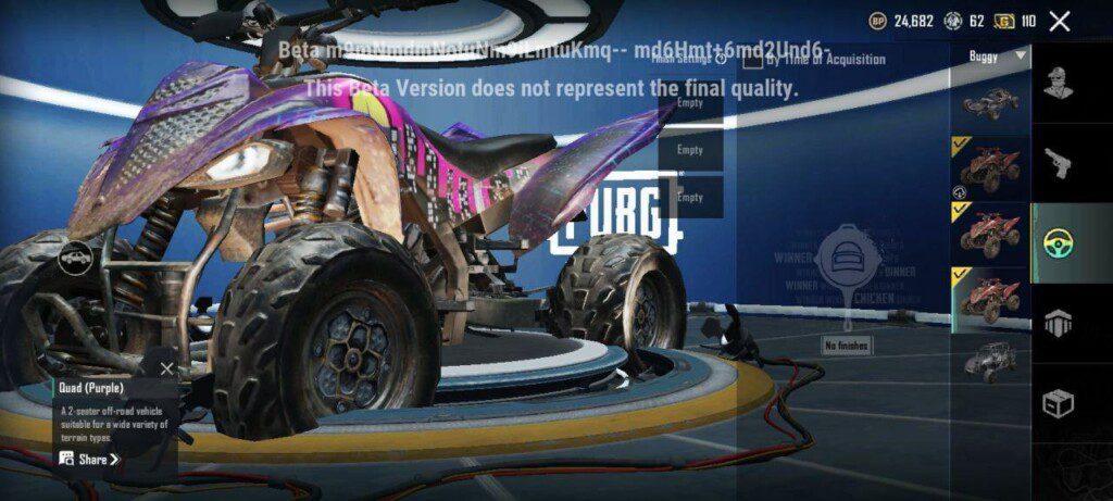 รถวิบาค ATV QUAD BIKE สำหรับ 2 ที่นั่ง ซึ่งจะมีสกินติดมาให้ทุกคัน เป็นรถมอเตอร์ไซต์ 4 ล้อ โดยรถคันนี้อยู่ในแมพใหม่ NUSA เท่านั้น