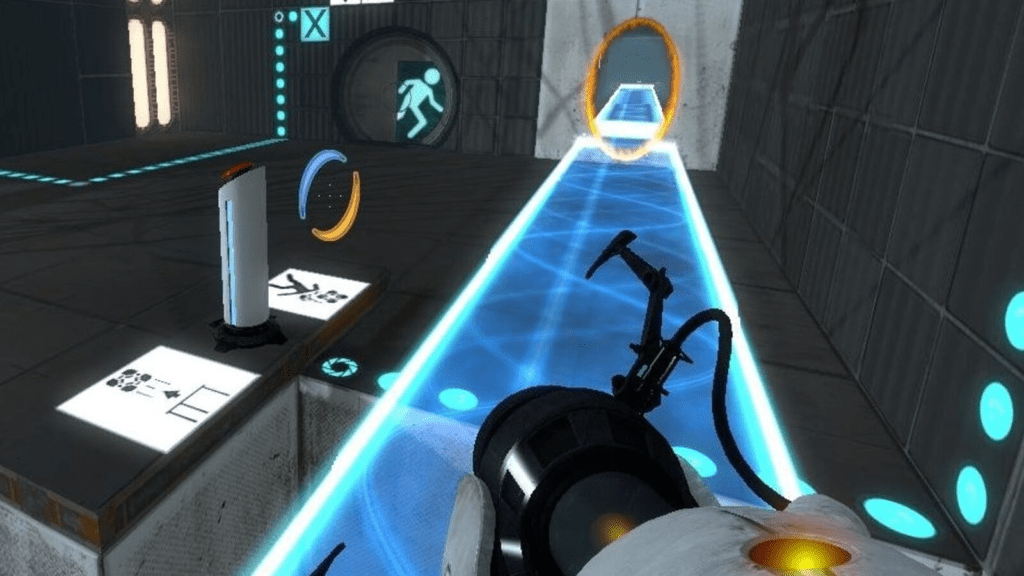 Portalเป็นชุดของ วิดีโอเกม แพลตฟอร์มไขปริศนา มุมมอง บุคคลที่หนึ่ง พัฒนาโดย Valve ตั้งอยู่ในจักรวาล Half-Life สองเกมหลักในซีรีส์ Portal (2007) และ Portal 2 (2011) โดยมีศูนย์กลางอยู่ที่ผู้หญิงคนหนึ่ง Chell ถูกบังคับให้ผ่านการทดสอบภายใน Aperture Science Enrichment Center โดยปัญญาประดิษฐ์ตัวร้าย , GLaDOS ที่ควบคุมสิ่งอำนวยความสะดวก การทดสอบส่วนใหญ่เกี่ยวข้องกับการใช้ “Aperture Science Handheld Portal Device” ซึ่งมีชื่อเล่นว่าปืนพอร์ทัล ซึ่งสร้างการเชื่อมต่อระหว่างพื้นผิวเรียบสองพื้นผิวที่มีลักษณะคล้ายรูหนอนขนาดเท่ามนุษย์ ตัวละครหรือวัตถุของผู้เล่นในโลกของเกมอาจเคลื่อนผ่านพอร์ทัลในขณะที่รักษาโมเมนตัมไว้ สิ่งนี้ทำให้สามารถใช้การหลบหลีก “การเหวี่ยง” ที่ซับซ้อนเพื่อข้ามช่องว่างกว้างๆ หรือดำเนินการอื่นๆ เพื่อไปยังทางออกของห้องทดสอบแต่ละห้อง กลไกอื่นๆ จำนวนหนึ่ง เช่น เลเซอร์ สะพานไฟ ช่องทางรถแทรกเตอร์ และป้อมปืน มีอยู่เพื่อช่วยหรือขัดขวางเป้าหมายของผู้เล่นในการไปถึงทางออก