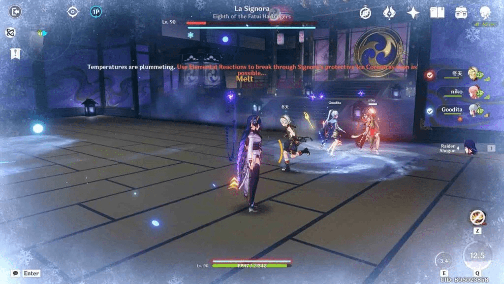 ยิ่งไปกว่านั้น ความเสียหายจากการฟันครั้งแรกของ Musou Shinsetsu จะสเกลไปพร้อมกับการสร้างความเสียหายแบบต่อเนื่องให้กับคนอื่นๆ ในทีม หากคุณสามารถสะสมกอง Chakra Desiderata ของ Baleful Omen ได้ (ระบุด้วยวงกลมสีม่วงด้านหลังยูนิตของคุณ) คุณสามารถเปลี่ยน Raiden Shogun เป็นหมัดเด็ดได้