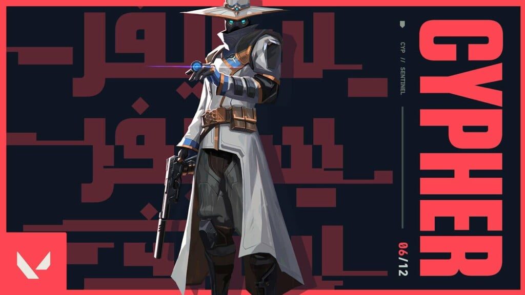 Cypher : หุ่นโรบอทที่มีทักษะในการป้องกันสูง มีหน้าที่เป็น Sentinel บอกเลยว่าโหดมากสำหรับฝ่ายป้องกัน มีสกิล Trap wire ที่จะเป็นเส้นทิพย์ขลึงระหว่างกำแพง ถ้าศัตรูเดินผ่านจะชงักไปพักนึง เราจึงได้เปรียบที่มีโอกาสได้โจมตีก่อน สกิล Cyber cage เป็นกับดักที่จะทำให้ศัตรูที่เดินผ่านเดินได้ช้าลง ซิกเนเจอร์สกิลคือ Spy cam เป็นการติดกล้องไว้ที่ตำแหน่งใดตำแหน่งหนึ่งหรือไม้กระทั่งติดไว้ที่ตัวศัตรูก็ย่อมได้ จะทำให้เราเห็นภาพว่าศัตรูอยู่ตรงไหนและทำอะไรอยู่ อัลติเมทสกิลคือ Neural theft ถ้าเราฆ่าศัตรูได้ 1 คน เราก็จะสามารถเห็นศัตรูคนอื่น ๆที่เหลือใน Mini map แต่มีเวลาเพียง 1 วินาทีเท่านั้นนะ บอกเลยว่าต้องตาไวสุด ๆ พูดง่าย ๆ ก็คือเป็นตัวระวังหลังนั่นแหละ สำหรับใครที่เป็นสายซัพพอร์ตเพื่อน ๆ ในทีมก็สามารถเล่นเอเจนท์นี้ได้