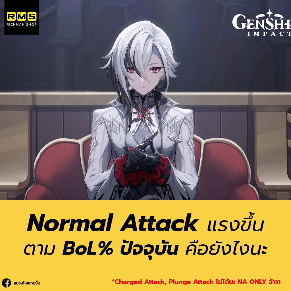 เพราะตามระบบเกมแล้ว ตัว BoL% ที่ถูกเอาไปเพิ่มใส่การโจมตีนั้น มีผลกับ Normal Attack เท่านั้น ส่วน Charged Atk หรือ Plunge Atk นั้นไม่ได้ผล BoL จ้าาา มันก็เลยเบาแบบนั้นแหละ