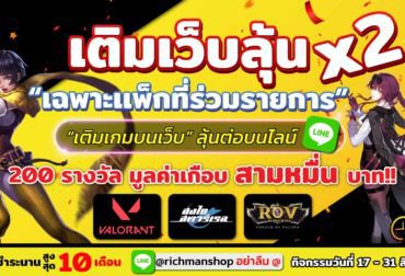 Richman Shop ผู้ให้บริการเติมเกม Online แจกใหญ่ มากกว่า 120,000บาท