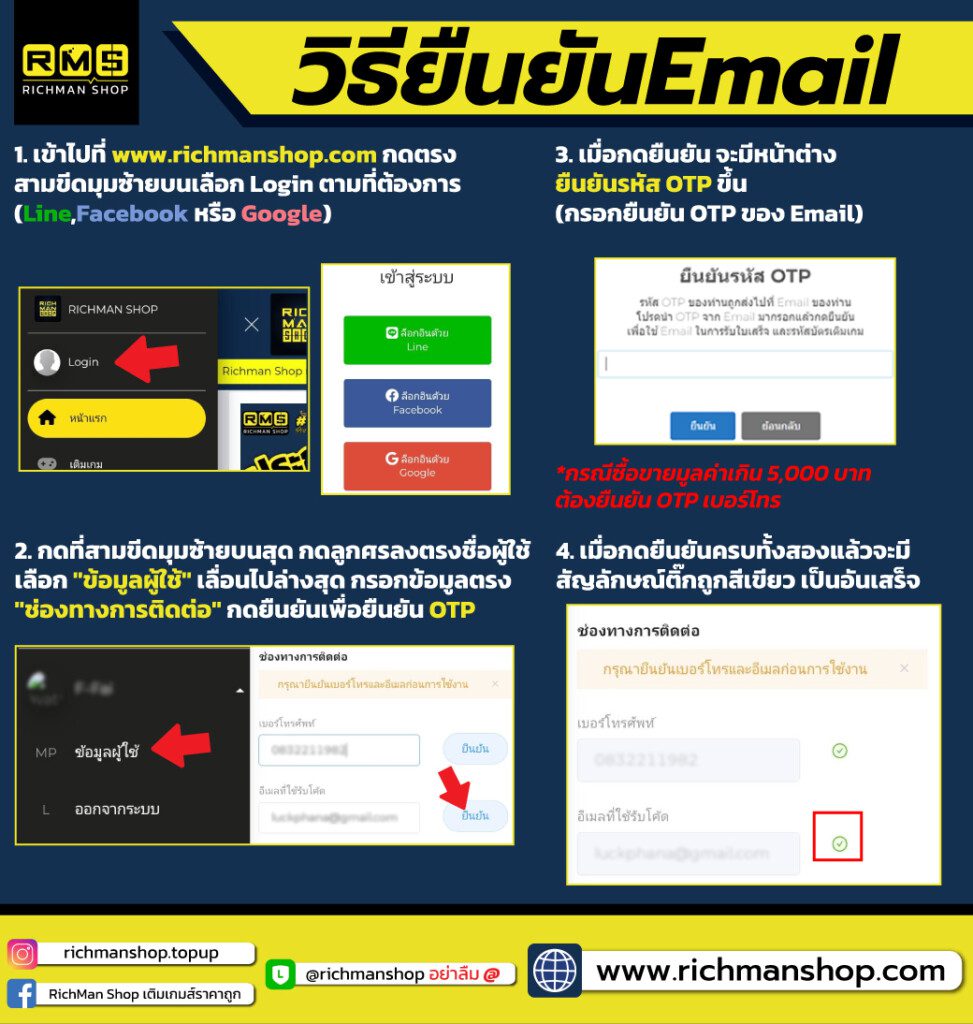 - เข้าไปที่ www.richmanshop.com กดตรงสามขีดมุมซ้ายบน เลือก Login ตามที่ต้องการ (Line , Facebook หรือ Google)