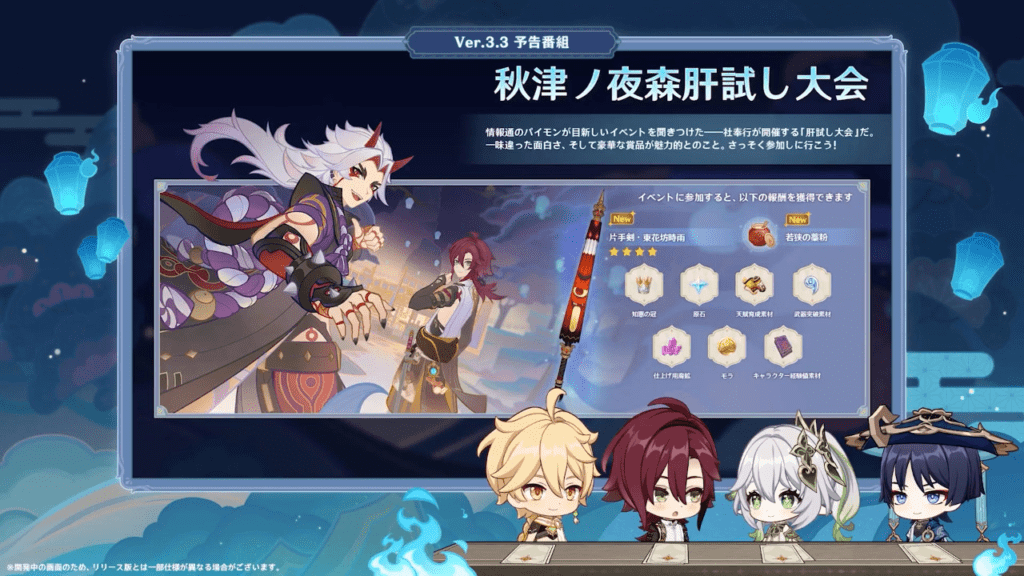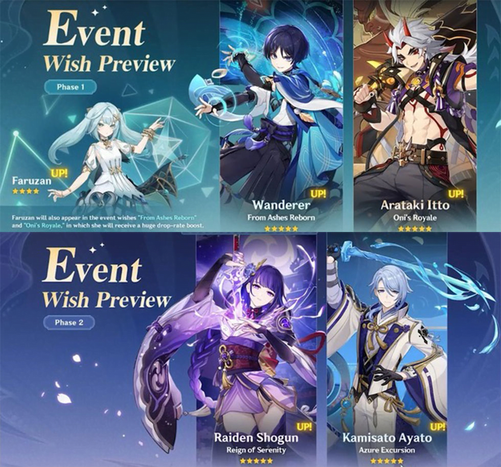 Phase 1 : จะเป็นการกลับมารีรันอีกครั้งของตัวละคร Arataki Itto และตัวละครใหม่อย่าง Scaramouche และ Faruzan
