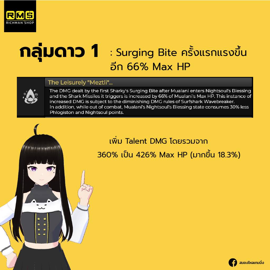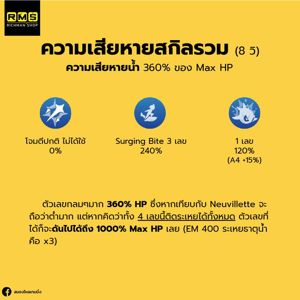 แต่พอคิดรวมตัวคูณเฉพาะตัว น้องมัวร์ (ระเหยน้ำ) 200-240% ต่อ Surging Bite ด้วยชำนาญธาตุ ~140-300 กลับมานำพี่นิว (A1 1.6 เท่า) 185% ต่อการชาร์จยิง