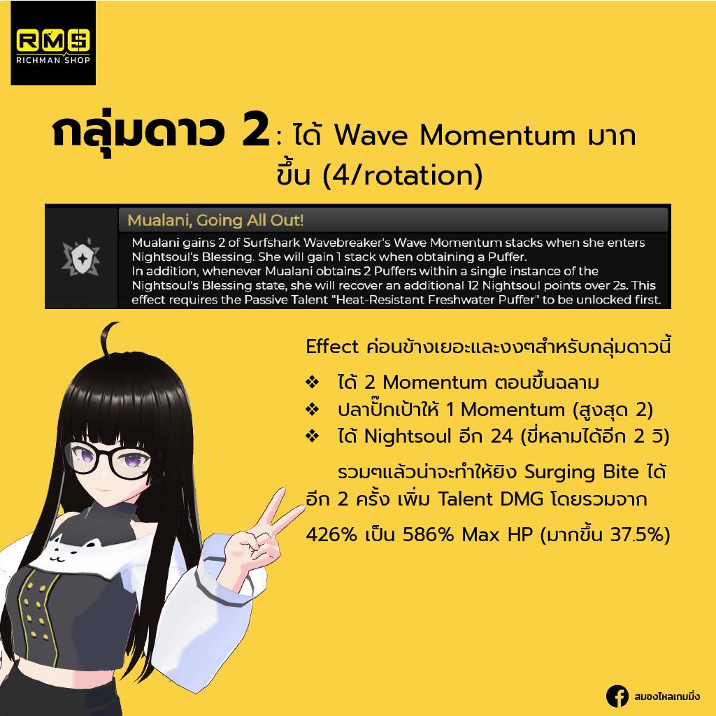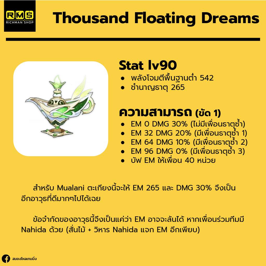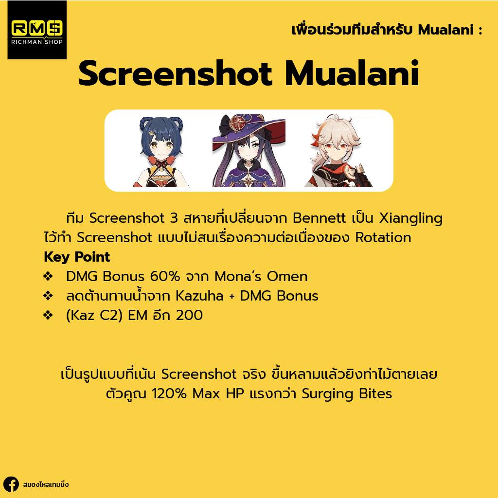 Hypercarry ทั่วไปแล้ว ก็มักจะ wombo combo Bennett, Kazuha, Zhongli จบๆ บัฟ Atk, DMG เยอะๆ แล้วก็ฟาดเลขใหญ่ๆ แต่สำหรับ Mualani แล้ว ดันหิวชำนาญธาตุอีกเลขด้วย เพื่อที่จะทำดาเมจระเหยให้รุนแรง