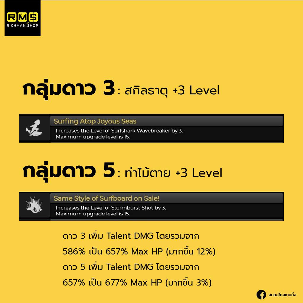 Ring of Yaxche อาวุธที่เพิ่มโบนัสความเสียหาย(DMG) ให้กับ Sharky Bite 32% และเติบโตเป็น HP – แต่ในเชิง value ก็ยังเบากว่าอาวุธประจำตัวหรือแม้แต่ 5 ดาวอื่นๆเยอะอยู่