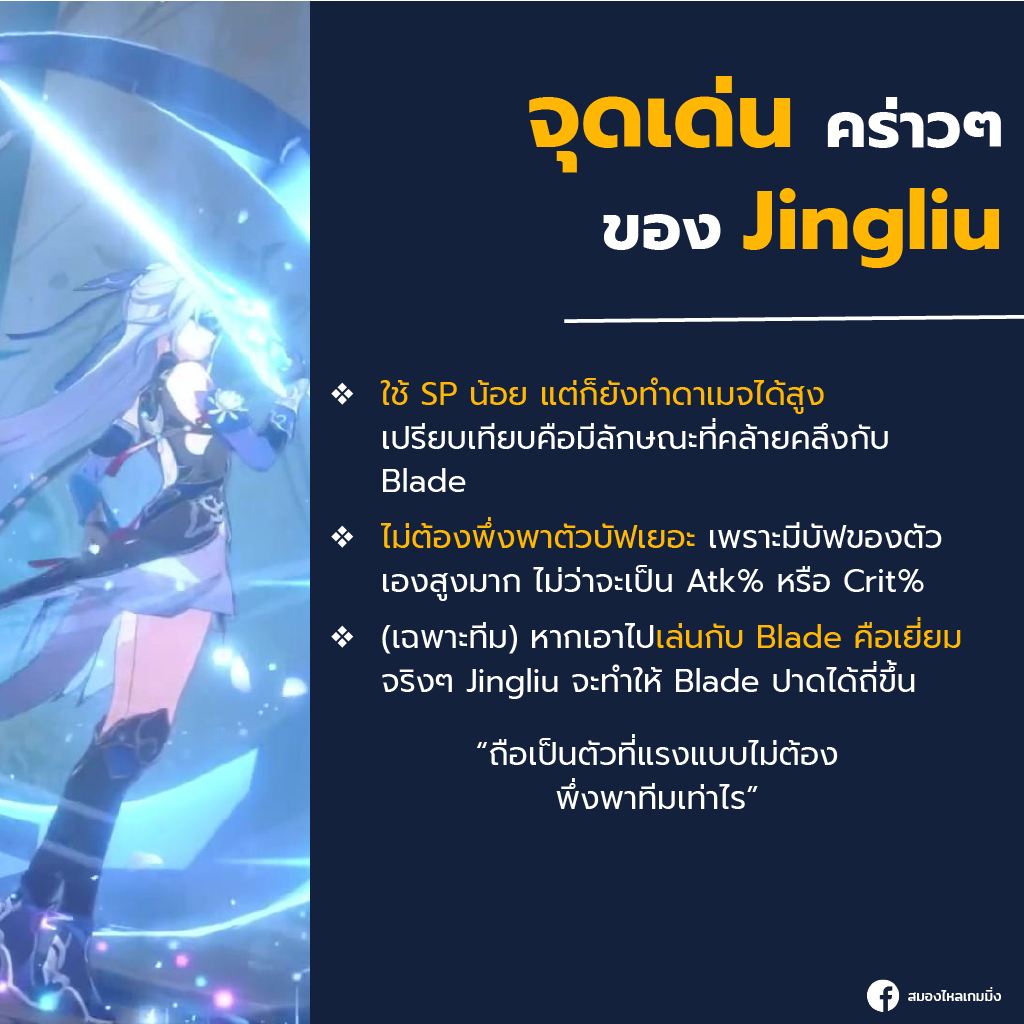 คอนเทนต์นี้ เป็นการแนะนำการเล่น และแนวทางของ ท่านอาจารย์ทำลายล้างธาตุน้ำแข็ง Jingliu ที่อาจจะเป็นประโยชน์ให้กับใครหลายๆ คน!