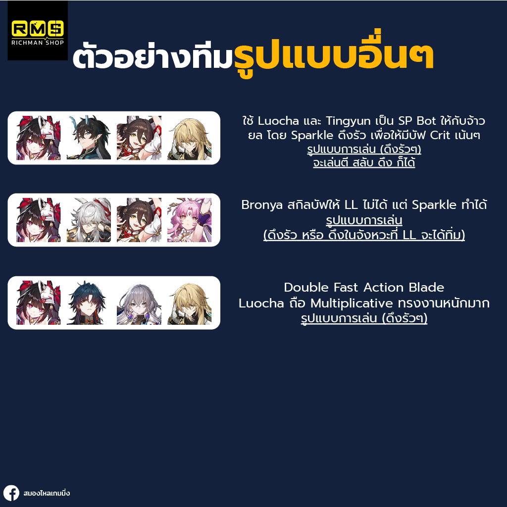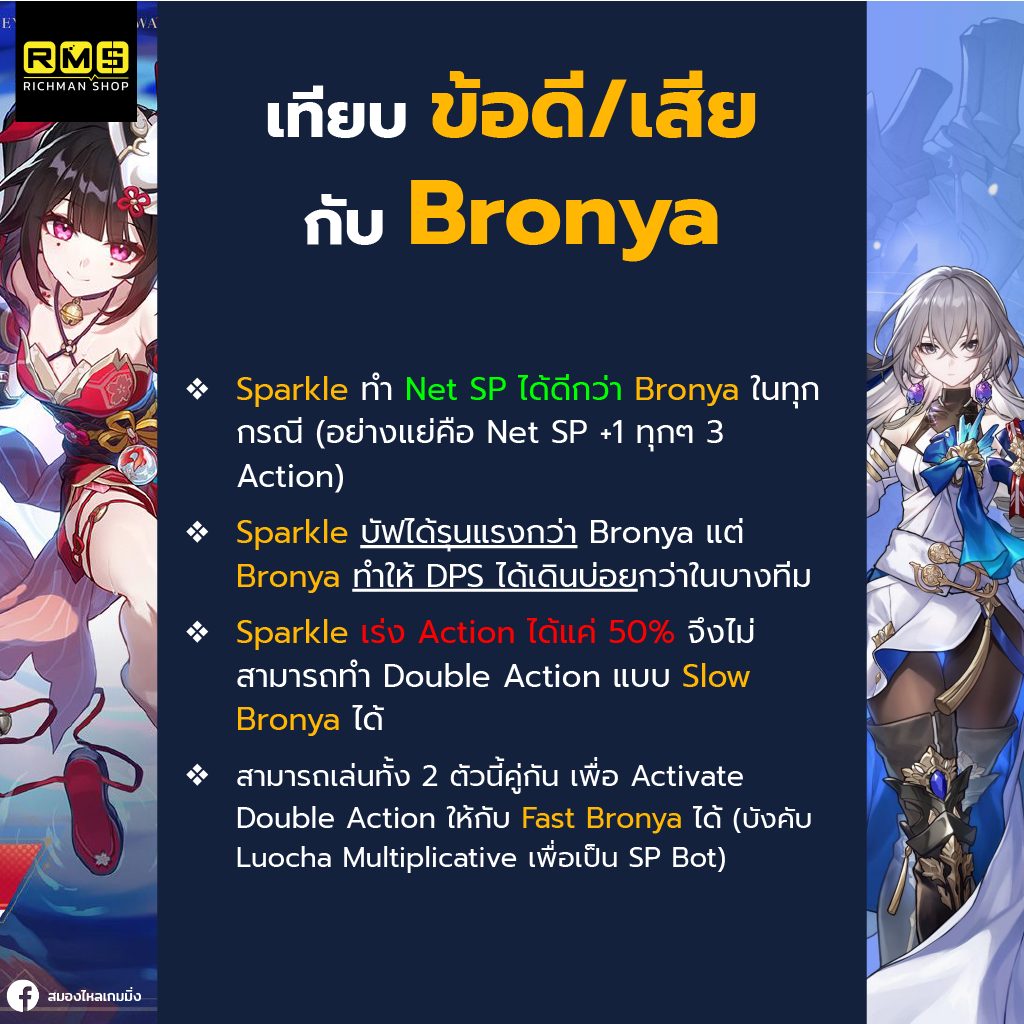 Bronya บัฟได้เยอะเหมือนกันก็จริง แต่ Uptime ของ Bronya นั้นสู้ Sparkle ไม่ได้เลย (นอกจากจะวาฬจัดจน Bronya E6