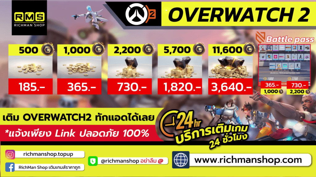 เติมเกม Overwatch 2 เติมด่วน เติมไว ถูกกว่าเติมเอง เติมแล้วมือทอง แอดไลน์ @richmanshop (มี@) หรือ คลิก