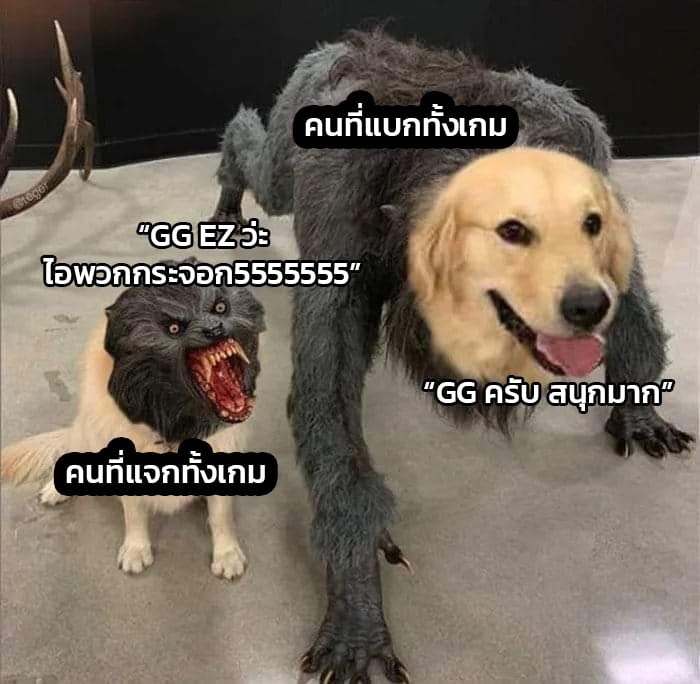 คนแบกไม่พิมพ์ คนพิมพ์ไม่ได้แบก กับการพิมพ์ GG EZ หลังจบเกม เจอกันเป็นสามัญประจำเกมกันอยู่แล้วกับการพิมพ์ GG EZ ที่ย่อมากจาก Good Game Easy ที่หมายถึงว่าฝ่ายตรงข้ามนั้น เอาชนะได้ง่ายดายสบายๆ แต่ส่วนใหญ่คนที่พิมพ์อะไรแบบนี้หลังจบเกมจะเป็นพวกที่จำนวนสกอร์น้อยที่สุด แต่สกิลปากมากที่สุด